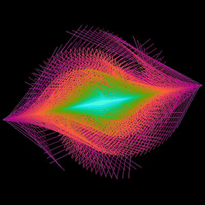 Normally you start the angle from 0 and go all the way around to 360 degrees incrementing by some small amount. When you skip faster around the circle in a regular interval (say every 80 degrees), you get something interesting. A Maurer Rose http://en.wikipedia.org/wiki/Maurer_rose